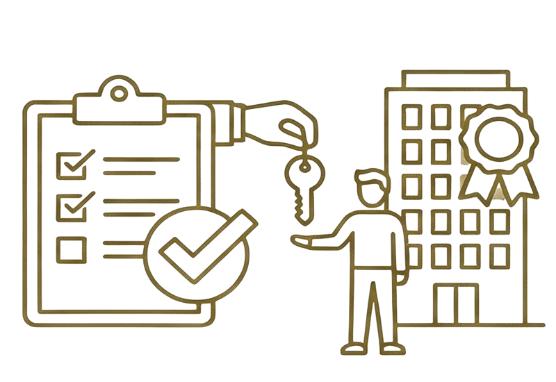 工事完了後、厳密な社内検査とオーナー様の立ち会い確認を行います。問題がなければお引き渡しとなり、いよいよオープン・事業開始となります。